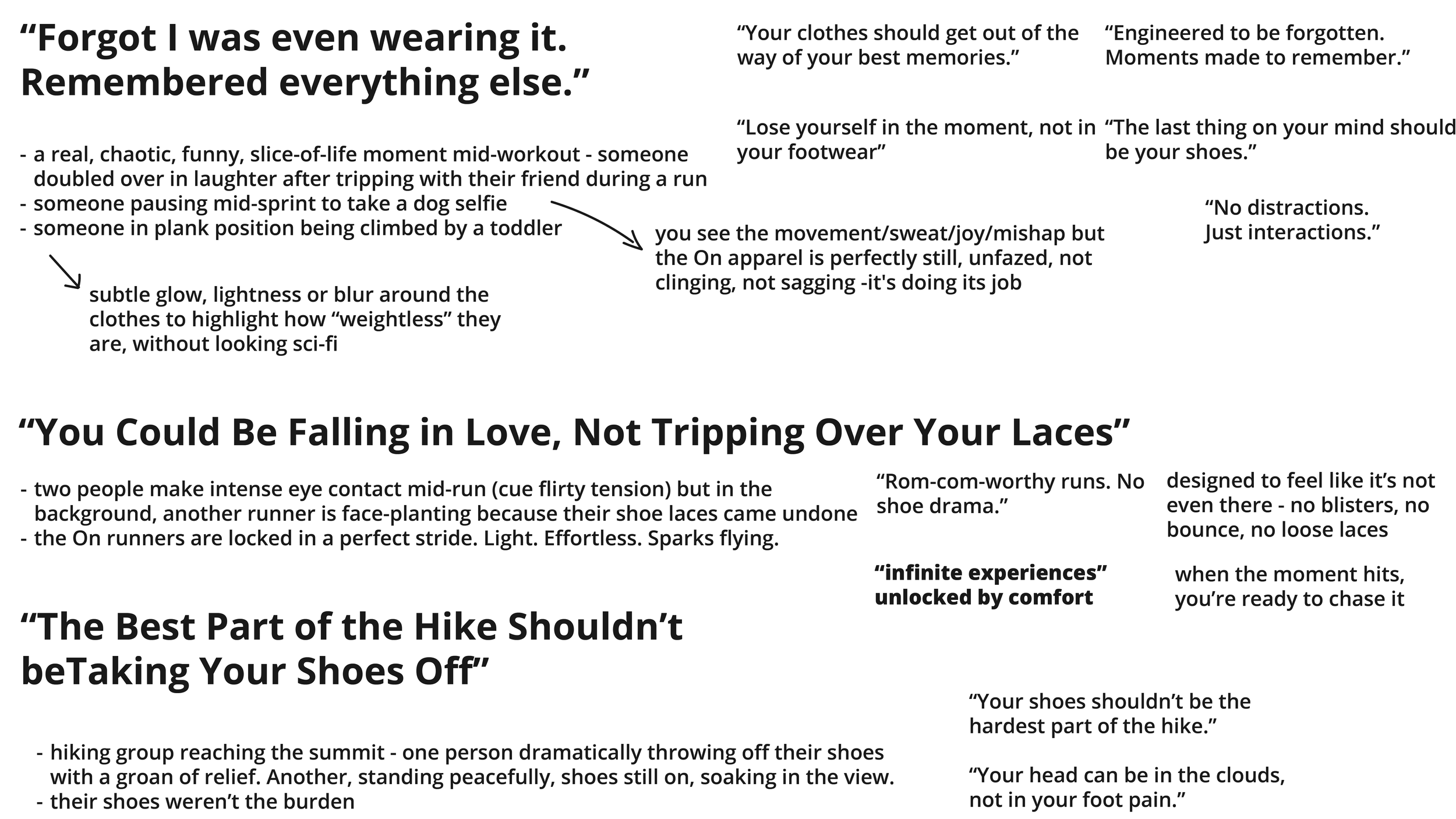 Translate high-performance tech into an emotional, movement-driven message that resonates with Gen Z’s energy, style, and desire for meaningful experiences. The campaign should feel fresh, platform-first, and challenge the idea that On is only for serious athletes.