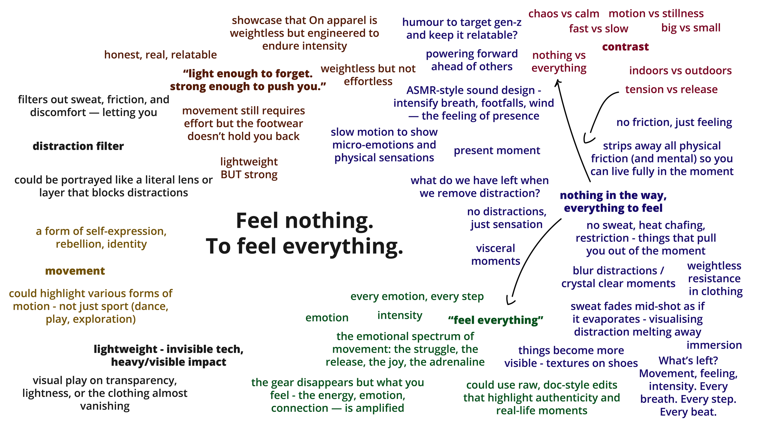 To create an integrated Gen Z campaign for On's lightweight, distraction-free Swiss Engineered apparel, centered around the core message: “Feel Nothing. To Feel Everything.”